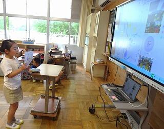 ★画面越しに河原子小学校3年生から質問や感想発表がありました。