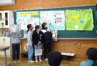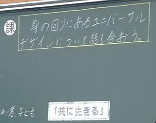 ★総合的な学習の時間「身の回りにあるユニバーサルデザインについて話し合おう」でした。