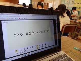 本校では、先生方の研修として、校内での授業研究会を実施しています。今回は3年生の取り組みを紹介します。3年生は、「小数」の学習です。学習の内容は、小数「3.9」をさまざまな見方で表現するのを考える授業でした。