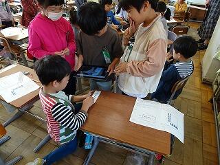 グループで考えたり、友達のところに集まって考えたりしていました。