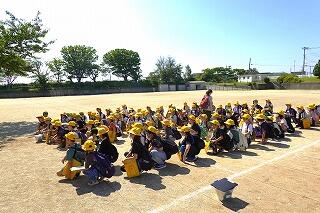 ★グラウンドに並び先生の話を聞いて、いざ出発です!しっかり話が聞ける3年生です!!
