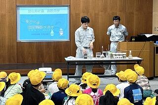 川から取水した水がどうやっていくと飲める水になるのか実験をしてくださいました。