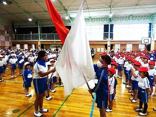 ★全体練習初日 各学年赤組、白組に分かれて整列しました。きちんと並べていて、かっこいい!!