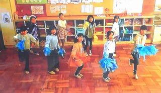 みんな3年生からもらったメダルを掛けていますね!