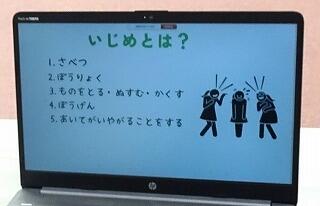 ★はじめに「いじめとは?」をパワーポイントを活用して発表しました。