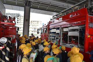 ★消防署の職員の方に案内され、署内や「働く車」を見学しました。