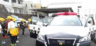 ★次に日立警察署を見学しました。話を聞いたり、「働く車」を見学したりしました。