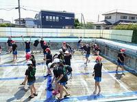 6月に入り、プール学習の準備が始まりました。まずは職員によるプール清掃です。